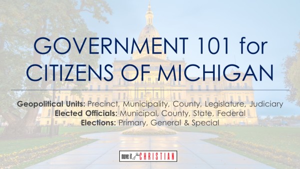The goal of this training is to educate the citizens of Michigan about their executive, legislative and judicial government representation from the precinct to the federal level. Exercises throughout will help you identify the geopolitical units you live in, track down the laws you are subject to, and develop a full list of your elected officials to watch, contact and ultimately hold accountable.